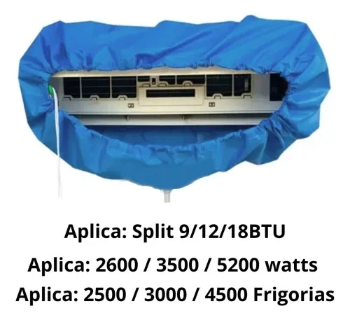 Diseñado para unidades de 18, 24 y 36 BTU, este cobertor facilita el mantenimiento al contener el agua y los residuos generados durante la limpieza.