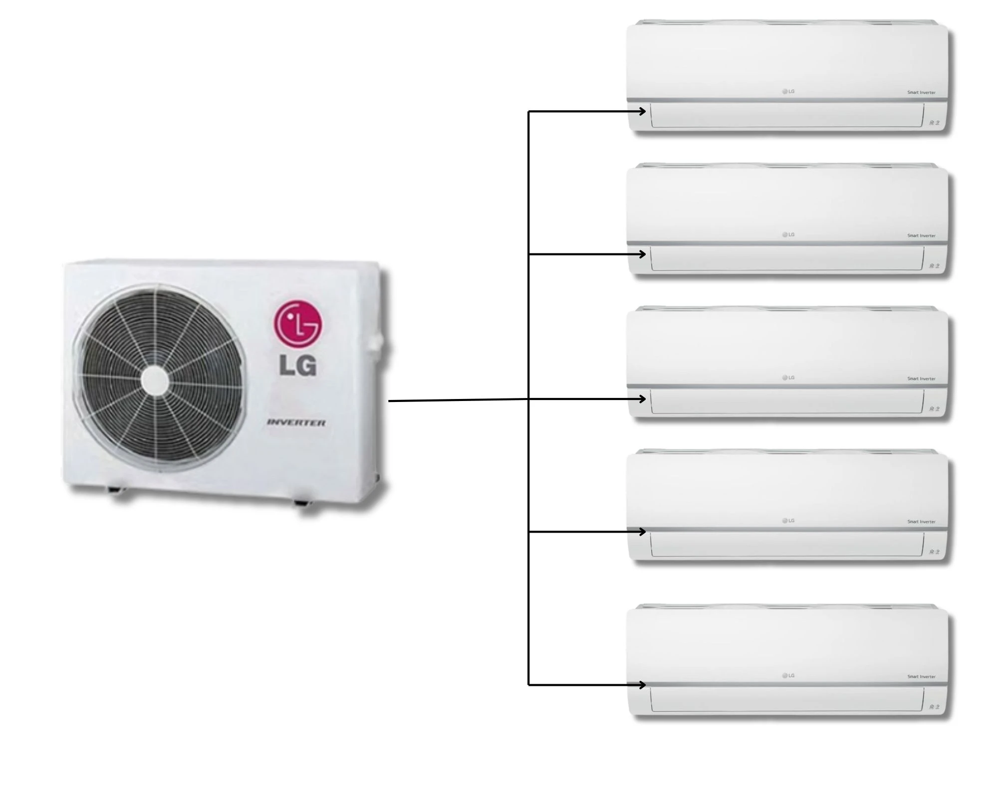 Libere el área que alguna vez estuvo ocupada por pilas de unidades exteriores. Con un sistema Multi Split, la instalación requiere un espacio mínimo ya que solo necesita una unidad exterior para soportar varias unidades interiores.