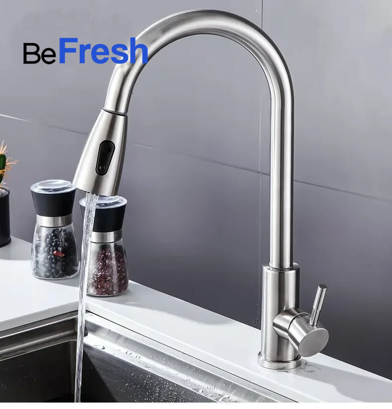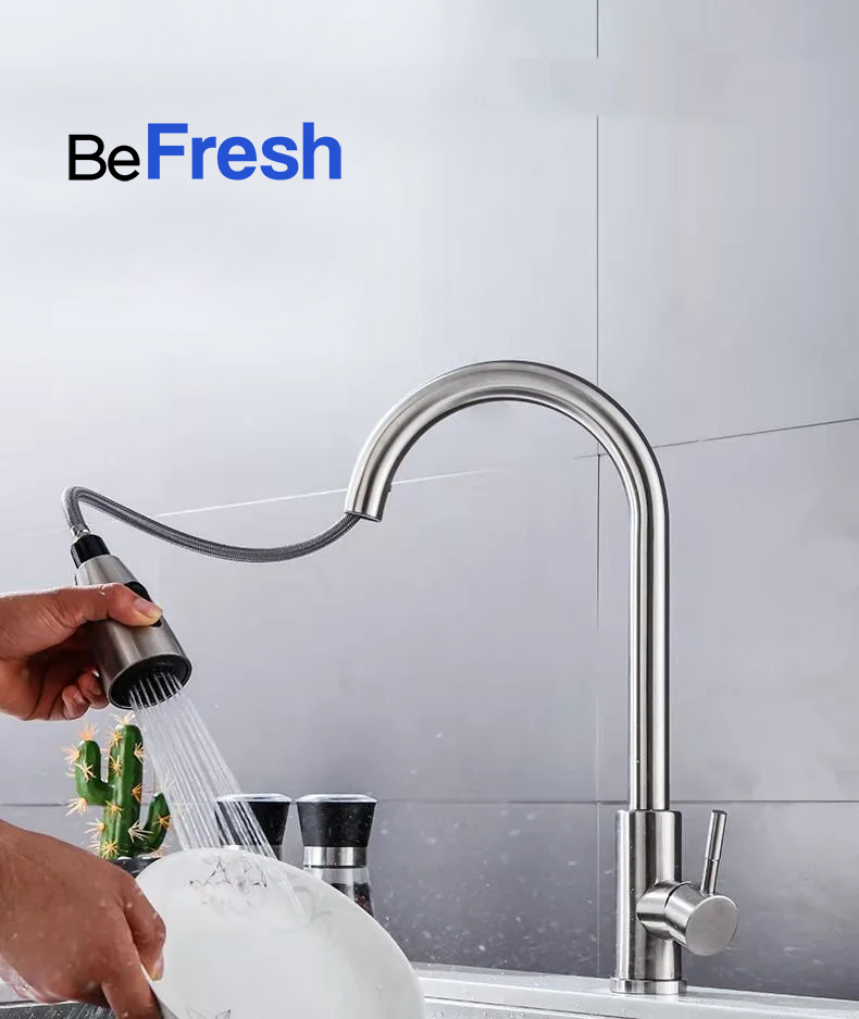 Su pico extensible amplía el margen de acción alrededor de la bacha como ningún otro modelo en el mercado puede hacerlo. Adicionalmente, permite adaptar la salida de agua tanto en modo lluvia como en chorro directo.