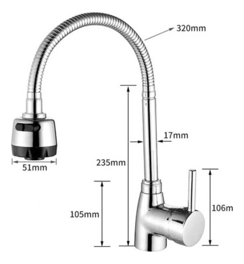 Fabricada en aluminio de alta calidad, esta canilla es resistente y duradera, ideal para el uso diario. Su cuello flexible permite una mayor movilidad, lo que resulta en una experiencia más cómoda al lavar utensilios o llenar recipientes. Además, cuenta con un aireador que optimiza el consumo de agua, brindando un chorro suave y eficiente.